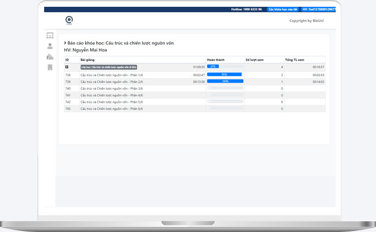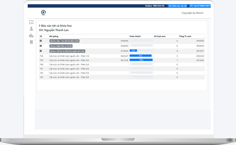 - Báo cáo tiến trình học của từng nhân viên