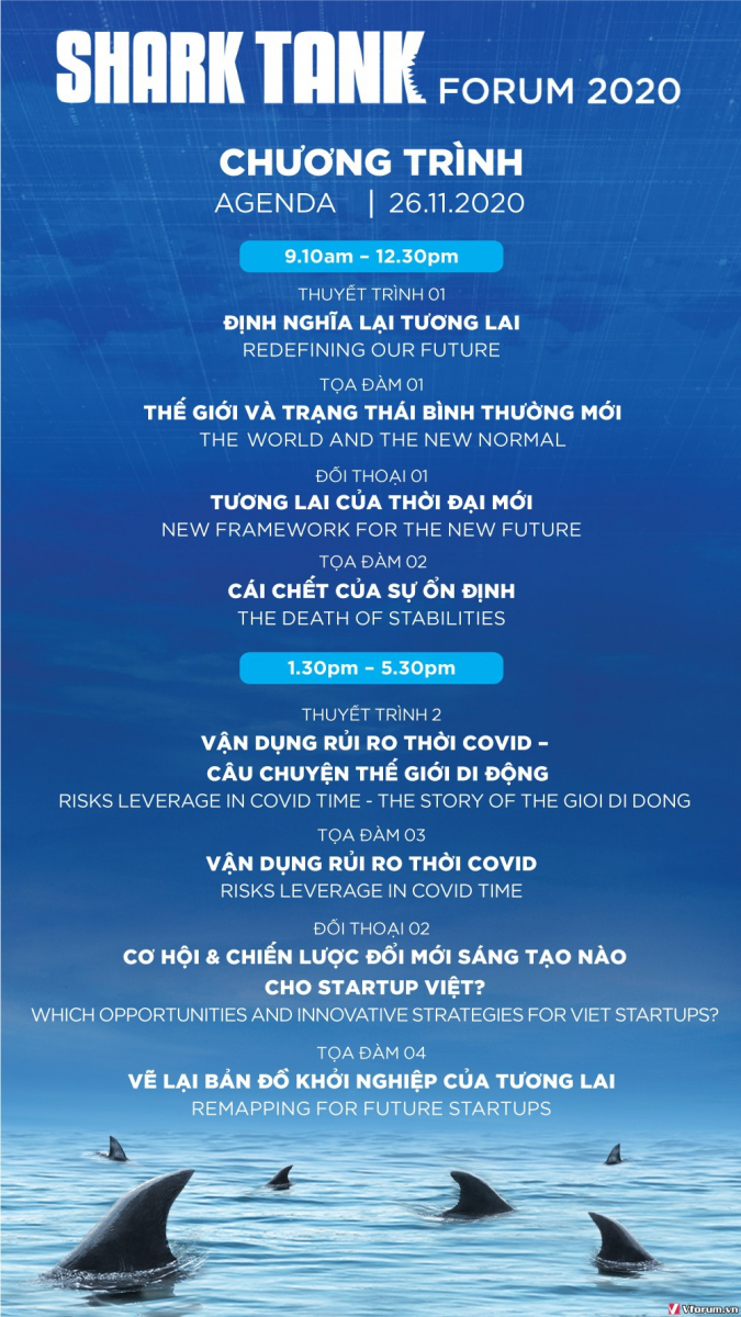 Những nội dung trên sẽ được thảo luận tại Shark Tank Forum 2020 với chủ đề ĐỊNH NGHĨA LẠI TƯƠNG LAI – REDEFINING OUR FUTURE. Sự kiện có sự tham dự của các Tập đoàn, chuyên gia và Nhà đầu tư của Shark Tank Việt Nam, cùng 1000 Startup & Doanh nghiệp.