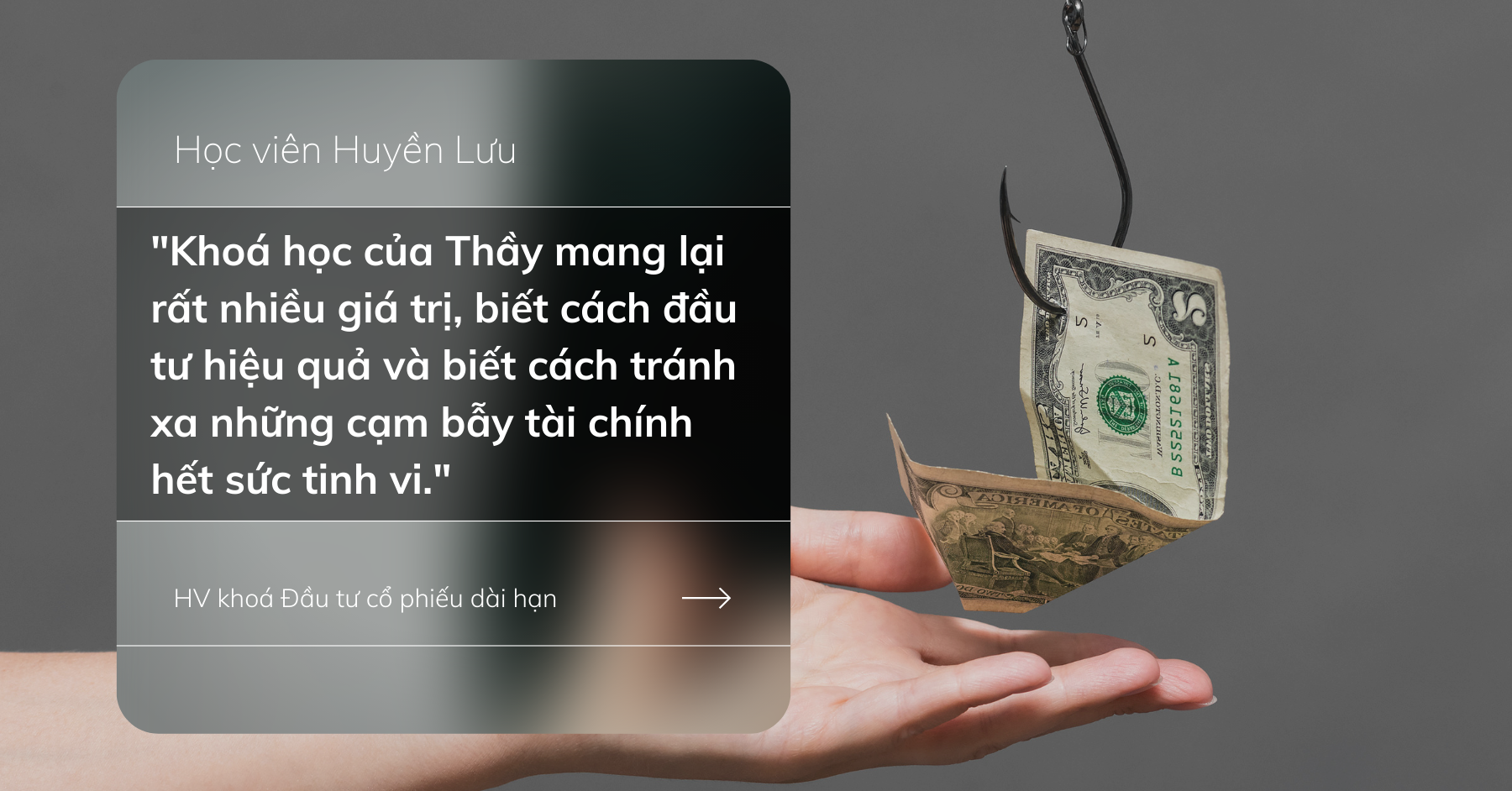 "Thầy dạy cực dễ hiểu và tâm huyết, nhiệt tình. Em là dân mù mờ tài chính nhưng học và đầu tư từ tháng 8 đến nay bước đầu đạt được lợi nhuận vượt cả mong đợi. Thật sự biết ơn thầy đã dạy kiến thức hữu ích như vậy. Những gì nhận lại được quá lớn so với học phí! Mong thầy ra thêm nhiều khóa học khác nữa..."